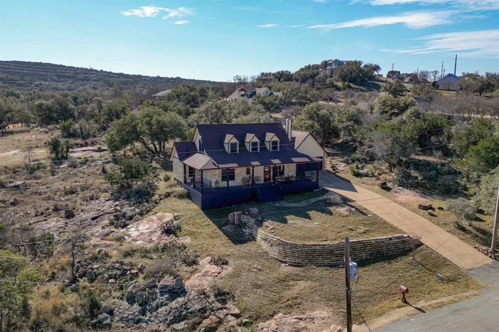 INCREDIBLE Inks lake views! Custom built in 2000, this 3 bedroom, 3 full bath home sits atop a hill overlooking Inks Lake on just over an acre of land. Featuring vaulted ceilings, and an open concept floor plan, with 2 full bedrooms and bathrooms downstairs, a spacious wrapped porch, and a 2 car attached garage. The home is situated on one of three lots, and offers many possibilities with the option to build additional structures, or even sell off the back lot. The spacious third bedroom upstairs offers a private full bathroom, and would make an excellent bonus space, and/or study. 12x24 storage building with electric, sprinkler system, solar screens, and roman shades throughout. Abundant wildlife, stellar lake views, POA access with boat ramp and park, this home makes a fantastic permanent or second home!