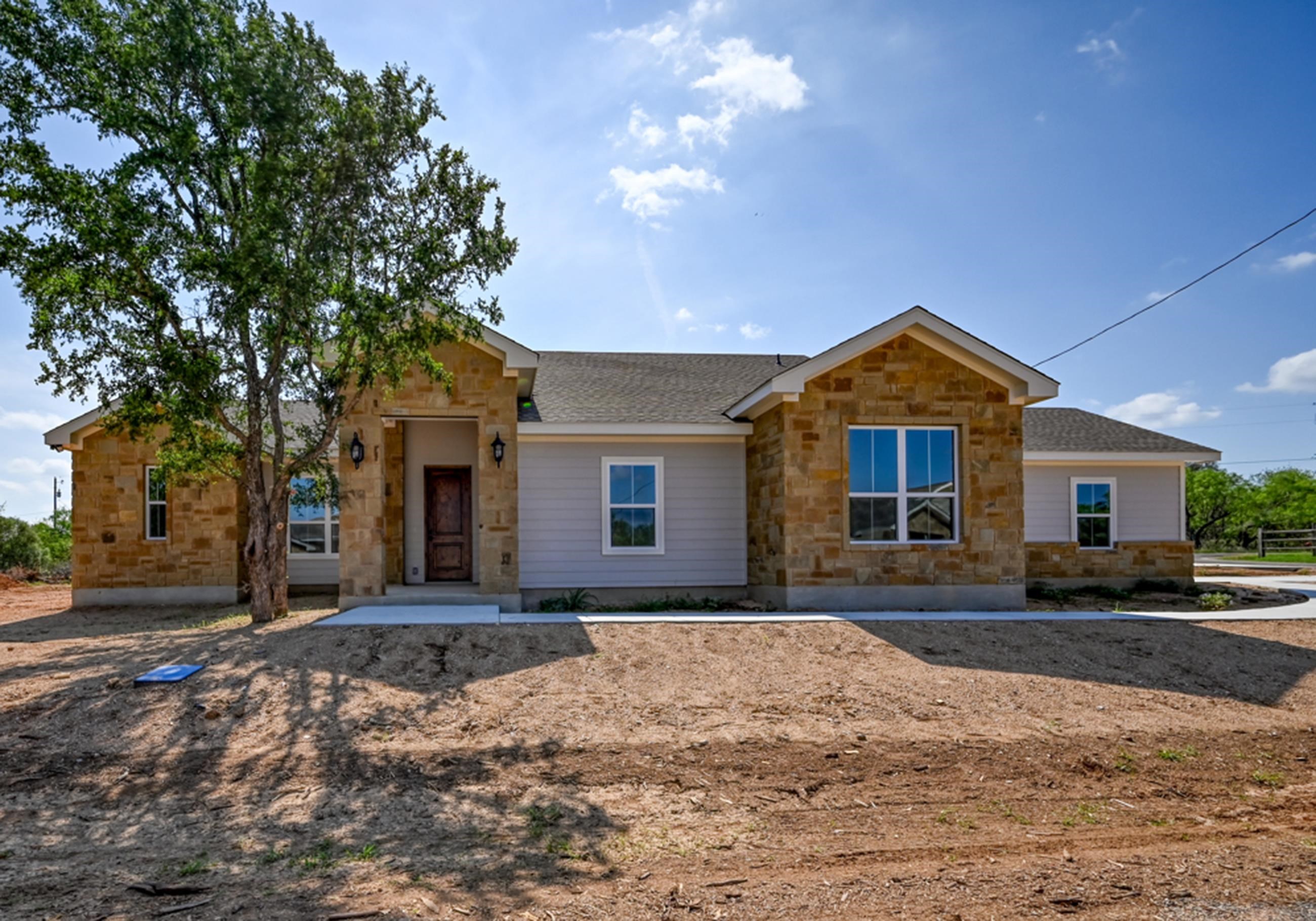 Amazing new construction in Granite Shoals. Bright quartz counters in white kitchen with accent color on island cabinets that provide extra storage. Huge walk-in pantry. Split plan with master suite in rear of home. Master bath features stand-alone soaking tub, plus large separate shower, two vanities, split by one of two closets. Two guest bedrooms, study, large laundry room and guest bath on common hallway. This is one of numerous new homes built in this area of Granite Shoals. The city features numerous waterfront parks that provide lake access to residents. Also, enjoy walking trail, sport courts and bird watching at Quarry Park.