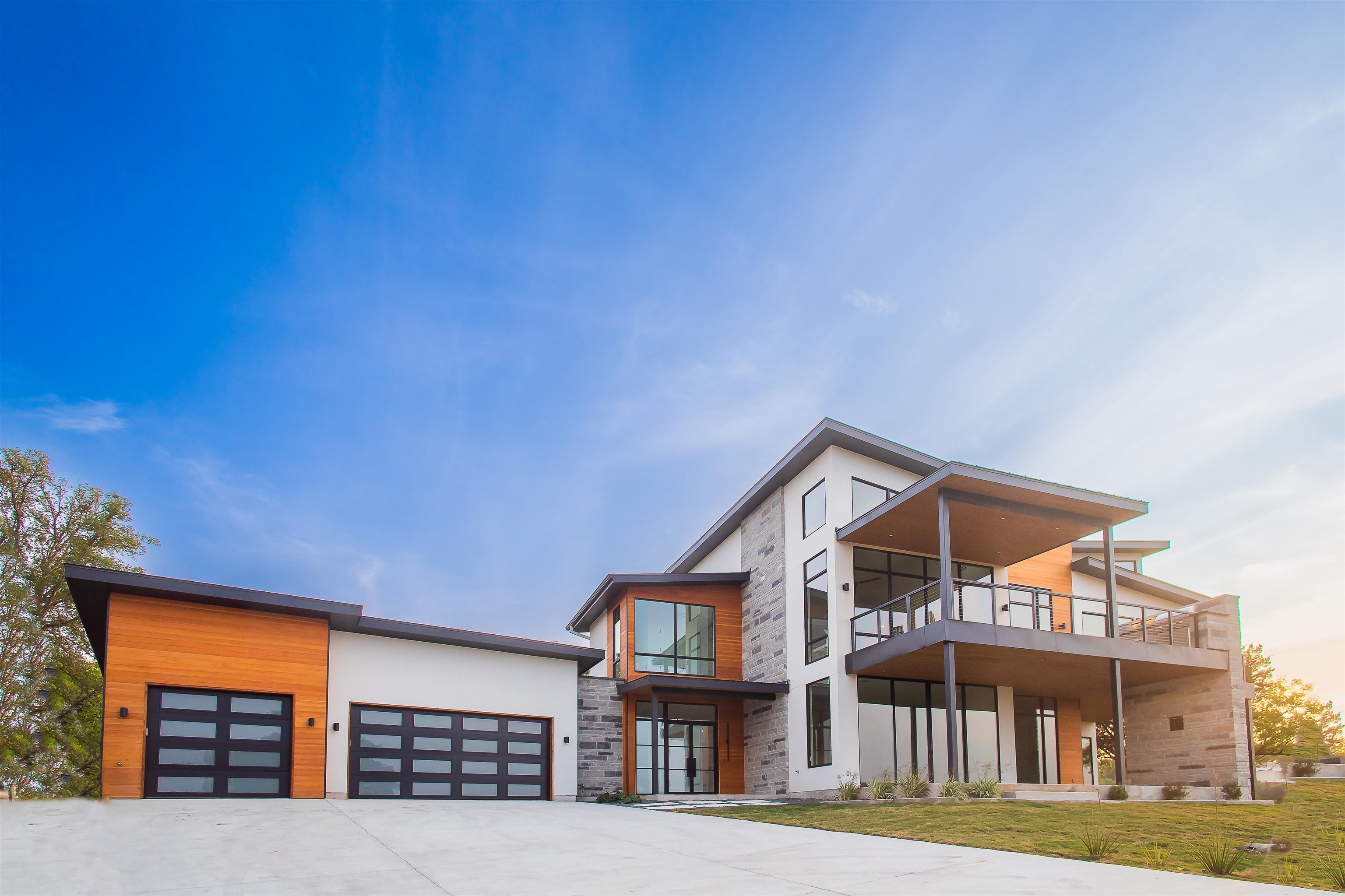 A modern custom home by nationally recognized Healthy Home Builders, JS2 Partners, featuring an epic 270 degree view of Lake LBJ and Apple Rock Golf Course. Features ample outdoor living space and custom finishes throughout the 3607 sq ft home. This healthier home was built with wellness top of mind using all zero VOC materials, paints & finishes. The open concept kitchen and living are perfect for entertaining. Luxury quartz countertops and maple custom crafted cabinetry add a contemporary touch to this modern organic home. Floor to ceiling storefront windows with a custom iron entry door. Natural materials play a role throughout, including marble-look porcelain flooring, fluted accent walls, grasscloth wallcoverings and stone backsplashes. Commercial grade insulation takes energy efficiency to a new level in residential construction. Aging-in-place friendly with maple trimmed elevator. Clean hospital grade air thanks to the whole home air purification + dehumidification system. 3 car garage with 100 amp EV charger. ARCHITECT: W R Barrineau & Associates. INTERIOR DESIGN: Healthier Homes.