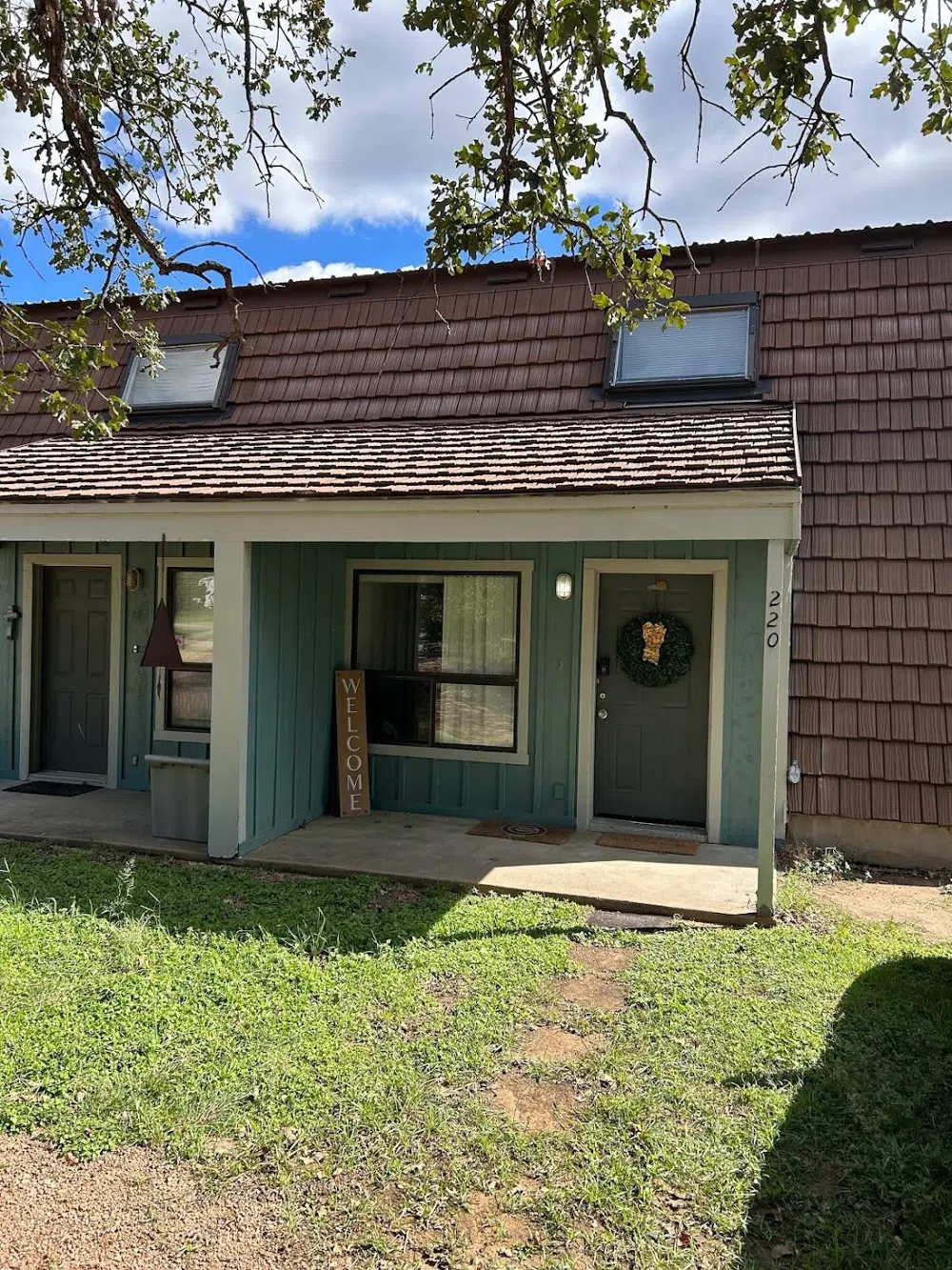 Location. Location. Location. Close to everything in Kingsland. Very short distance to Packsaddle Elementary, H-E-B, the Pharmacy, & Lake LBJ. 2BD/2BA. One bedroom downstairs that shares a full bathroom with the common areas. Master bedroom is upstairs with a full bathroom and has its own private balcony. Also has a carport with storage. This does share one common wall with the neighboring unit. Perfect weekend get away home or small family home. No POA. Hot water heater installed in 2015. HVAC in 2019.
