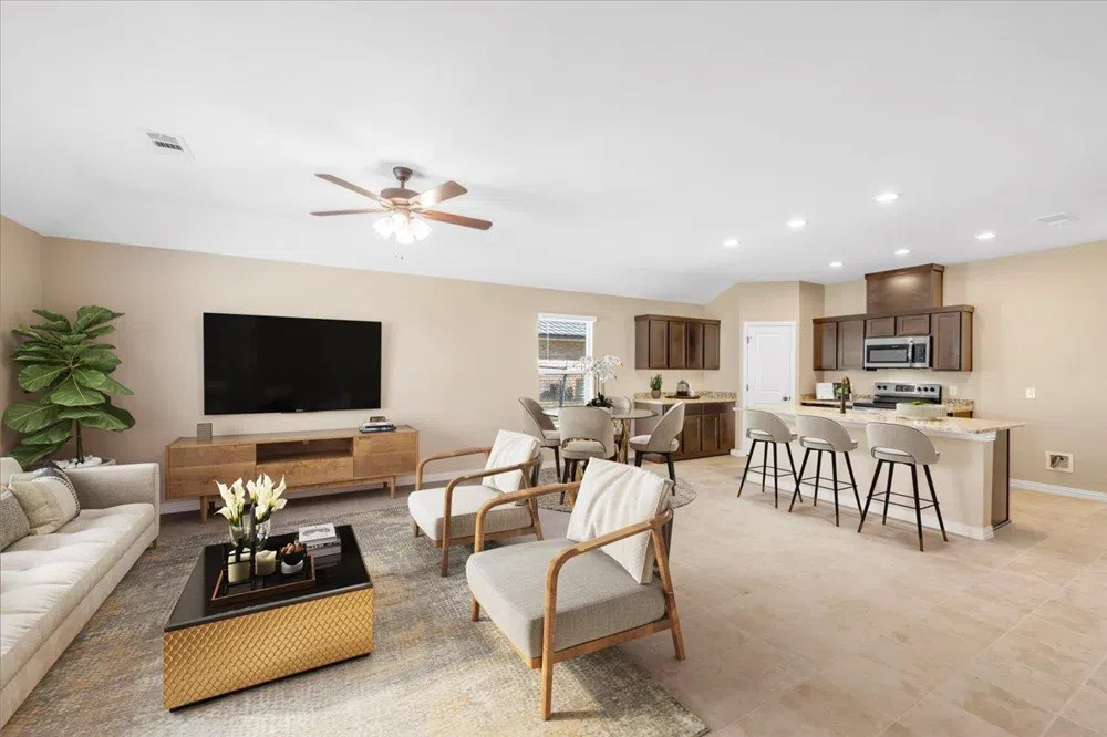 Welcome to your investment or first-time home buying opportunity in beautiful Kingsland, TX! This spacious, open-floor plan, 1324 sqft home is perfectly situated just minutes away from the conveniences of HEB, the charm of downtown Kingsland, and the recreational paradise of Lake LBJ. Located in the highly sought-after Nob Hill area, this property offers central ccess to all that Kingsland has to offer. This home features high ceilings, granite counter tops, luxury vinyl flooring, recessed lighting, and carpeted bedrooms. Don't miss you chance to invest or live in this prime location with endless potential! Bonus low tax rate & no HOA!