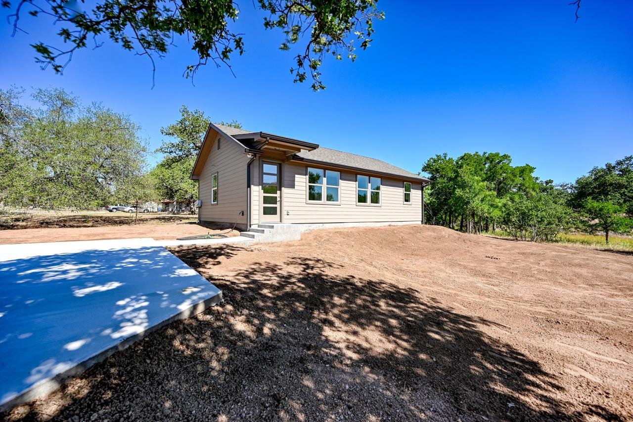 New construction (early June completion) on a fantastic oversized lot featuring a peaceful creek side setting and mature trees. This 2 bedroom - 2 bathroom home is high quality construction with incredible attention to detail. The main living area is bursting with natural light and a functional kitchen that will feature beautiful soft close white shaker cabinetry, large island, stainless steel appliances, and granite countertops. Lifeproof vinyl plank flooring spans throughout the living area with carpet in each bedroom and tile in the bathrooms and laundry room. Tons of storage makes this floor plan a highly functional space! Additional extras include 9' ceilings, 8' front door, seamless rain gutters, decked storage area in the attic, two car carport, 2 x 6 exterior walls, and wiring for cable in the living room and master bedroom. Energy saving extras include blown insulation, radiant barrier, low E double pane windows, and 2.5 ton 14 seer heat pump HVAC. The patio off the kitchen will be the ideal place to sit and enjoy the creek side. You will feel like you are living in the country while being close to all the wonderful amenities Kingsland has to offer - Lake LBJ, local schools, dining, shopping, and more. With a early-June completion, you can be enjoying the Hill Country by summer time. Don't wait!