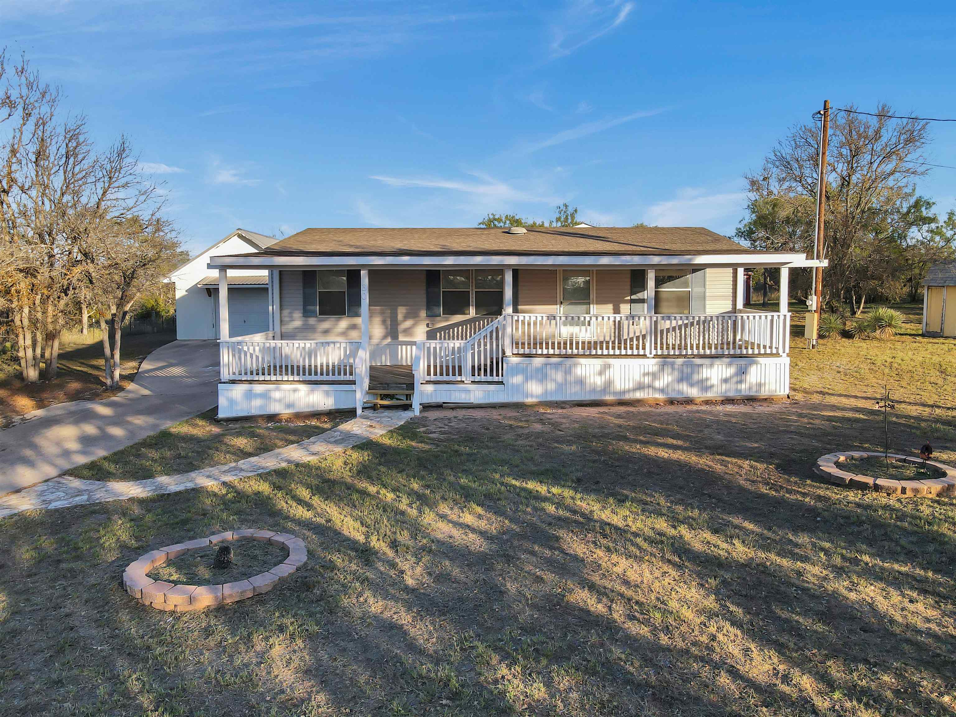 Seller will provide $10,000 for carpet repairs ONLY with an adequate and acceptable offer. Come check out this secluded amazing home, with 3 bed 2.5 baths and 1,720 sqft. The front porch views are immaculate with the sun setting over Packsaddle Mountain. Enjoy this Hill Country living on 0.96 acres, a detached 3+ car garage or boat/outdoor toys storage. This home has 2 living rooms a large kitchen and plenty of space for living. Lake LBJ is less than a mile away as well as Lighthouse Country Club. Come make this amazing property yours and start enjoying watching an immaculate sunset from your front porch!