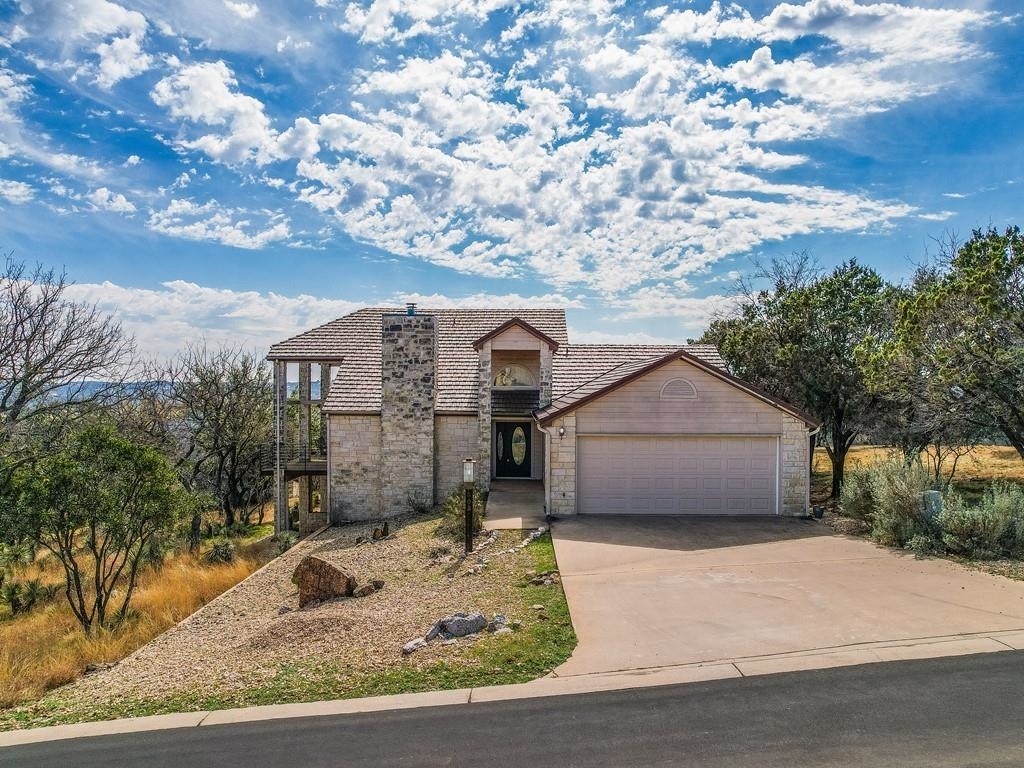 The ascending drive to 305 Spider Valley is comprised of sweeping hill country panoramic views with elegant amenities including breathtaking vistas of Lake LBJ, Apple Rock & Ram Rock Golf Courses, nearby Cap Rock Clubhouse & Pavilion and distant Packsaddle Mountain. Upon arriving at the estate, one is immediately greeted with the captivating sights only seen from atop a sloping hillside. The home is positioned to avoid the heat of the afternoon western sun, without compromising north facing views of the sparkling blue waters of Lake LBJ. Once inside, attention is drawn to soaring ceilings with an expansive wall of windows that open to a large covered patio designed to entertain and take in the natural beauty of the surrounding scenery. The stately living room features a gorgeous stone fireplace framed between custom wooden bookshelves. A spiral staircase leads to the mezzanine upstairs. The open concept, split floorplan offers 2 bedrooms on the main level; the primary bedroom suite features vaulted ceilings, a walk in closet and entry to the covered balcony. The secondary bedroom also features access to a covered patio and an ensuite bathroom. A large open kitchen provides ample storage with large custom cabinets, granite countertops, desk space & stainless steel appliances that convey, and leads to the utility room with a half bathroom and a sliding glass door out to a covered patio. Downstairs, we find a 3rd bedroom ensuite with wet bar. Home had 1 owner, only lived in during the winter months.