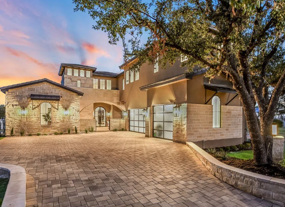 315 Matern Ct. is a newly constructed waterfront estate located in the gated community of Matern Island. Built on peaceful cove water, the home boasts coveted Eastern exposure and 76' of Lake LBJ waterfront. Guests are welcomed into a private courtyard that leads to the main house or the separate guest quarters. Inside, the grand two-story living area features a striking floor-to-ceiling fireplace and ten-foot glass stacking doors open to a spacious covered patio, creating a seamless flow between indoor and outdoor living spaces. The kitchens serve as the heart of the home, centered around a stunning quartzite waterfall island that enhances functionality and provides the perfect gathering spot for friends and family. The main-level primary suite is a luxurious retreat with a spa-like ensuite bath and a generous walk-in closet featuring custom-built storage solutions. Upstairs, you'll discover an entertainment haven, which includes a game room and a media room, complemented by a wet bar for easy hosting. Step outside to explore multiple levels of outdoor living spaces where you can enjoy resort-style amenities, including an outdoor kitchen & dining area, a private pool & spa, a fire pit, and a private boat slip. This meticulously crafted home combines luxury, comfort, and functionality, making it an ideal choice for those seeking the best in waterfront living.