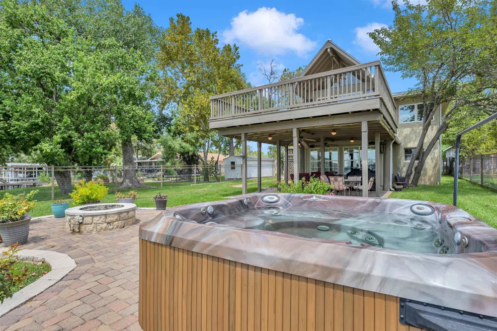 Welcome to 318 Beach Dr located on Lake LBJ! This charming home sits on 155 of open waterfront! There is a large front and backyard with plenty of room for your guests to park and play!! The lower level of the main house has 1 primary bedroom and 2 full baths as well as an office, game room, laundry room and gorgeous custom kitchen. The primary bedroom has a large ensuite with 2 walk in closets, large soaker tub, walk in shower with bench and separate water closet and double vanities. The upstairs level offers a full kitchen, dining area and living room with STUNNING lake views! There is also 3 bedrooms and one full and one half bath! There is an upper level porch and lower covered porch for plenty of room to entertain with an open patio area with a fire pit and hot tub! (The hot tub is negotiable to stay) The home also offers a large 4 car garage and large attic decked space that is easily accessed by stairs!