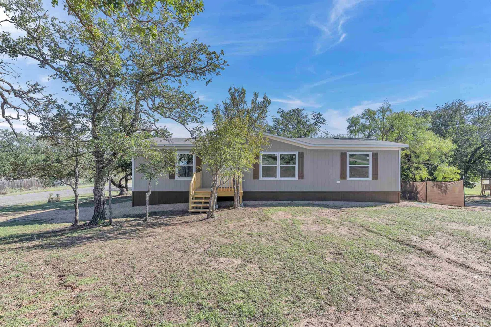 This NEW DOUBLE WIDE Manufactured home on your own corner lot That has been thoughtfully cleared. Has 3 bed 2 bath with master on suite in a great part of Kingsland close to the Lake, HEB and all amenities with A detached workshop/ shed on .30 acres with water, sewer, Electric hooked up and ready to move in, even the mailbox has been installed and upgraded thermostat. Would be a great starter home, retirement or short-term rental. Bring your kids and your furniture its ready today to move in. Very well thought out placement on the lot leaving lots of room on both sides for kids or animals. Partial privacy fence installed.