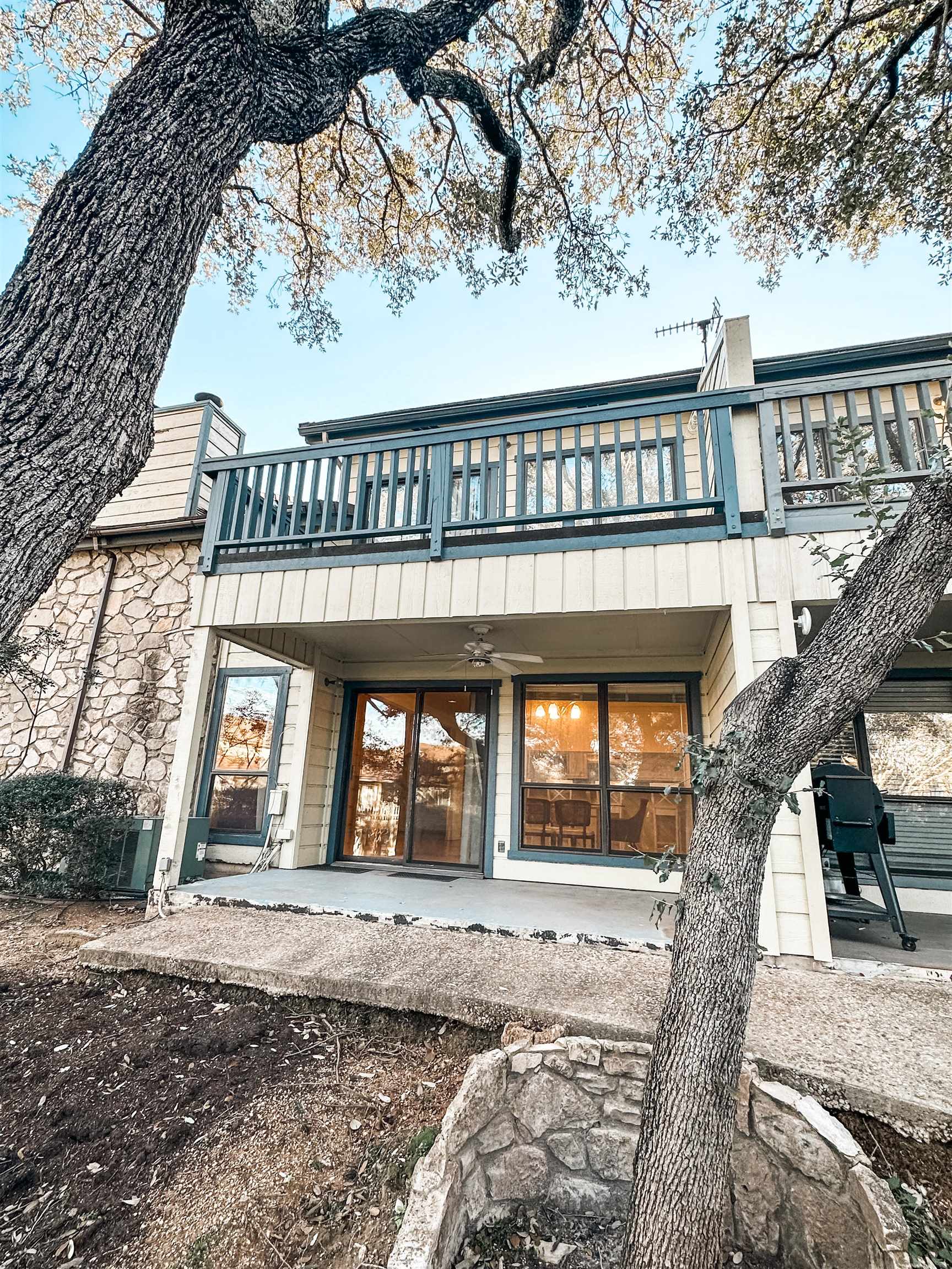 Welcome to this spacious Condo in the Texas Hill Country near Lake LBJ. This well maintained 3 bedroom, 3.5 bathroom property has everything you need. The primary bedroom and en suite located on the first floor easily fit a King sized bed and provides ample natural light. Upstairs are two additional bedrooms with the own full baths – operates as 3 primary suites. Both of the upstairs bedrooms have their own spacious balconies with sneak peek views of the Lake. Enjoy entertaining from the open flow Kitchen, Dining and Living room. Cozy up next to the fireplace or enjoy the sunsets for your patio. The community has a large pool open from March - November plus tennis and pickleball courts open year-round