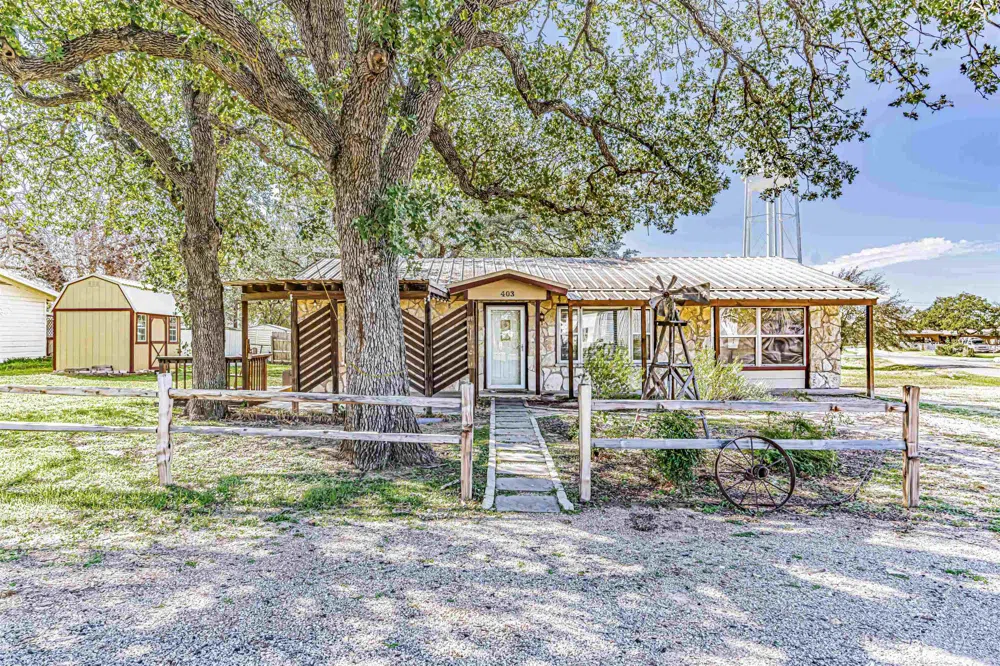 This charming 2 bed 2 bath home is located in a quiet neighborhood in walking distance to Lake LBJ with Kingsland Community Park just .3 mi away. The large covered front porch is great for enjoying the outdoors and the shady front yard. Inside the living/dining space feels spacious for its size with plenty of windows for natural light. The house is being sold with an extra refrigerator, the kitchen island, and the washer and dryer. Out back you will find another large shade tree and fenced back yard. To the side of the house there are two storage buildings both being conveyed with the property. This kind of value is hard to find so don't miss your chance.
