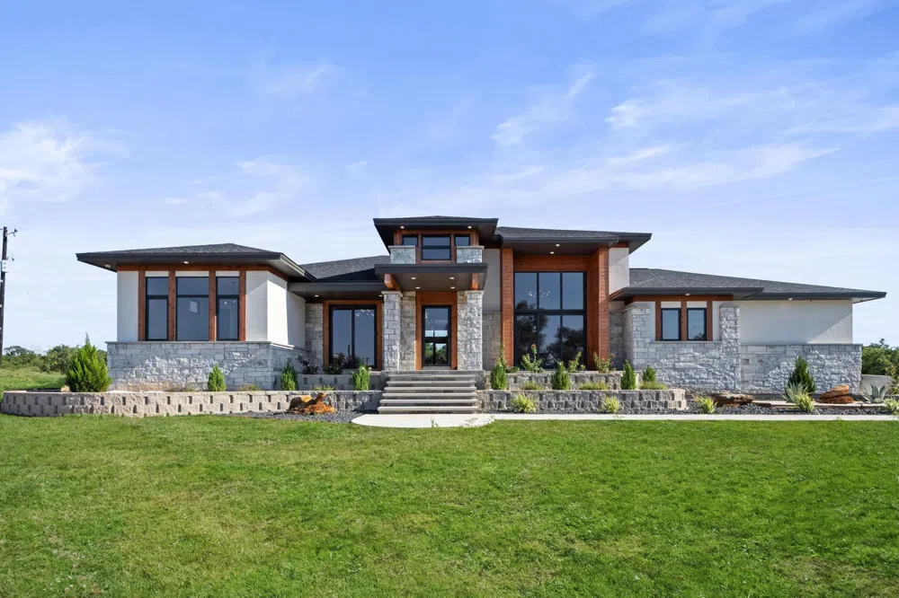 New construction home in The Bluffs gated community at Round Mountain's spectacular subdivision. Convenient to Horseshoe Bay, Johnson City and Marble Falls in desirable Hill Country. This home boasts 4 bedrooms, 4 baths, one half bath, home office, game room, surround sound speakers, security system, mud room, European custom cabinetry, modern light fixtures, glass wall showers, and custom luxury features throughout. Excellent design layout allows natural light in while a home automation system provides ability to keep energy use and comfortable temperatures manageable during hot summer days. The large covered back porch invites family dinners and entertaining. Expected completion is the end of April, 2023.