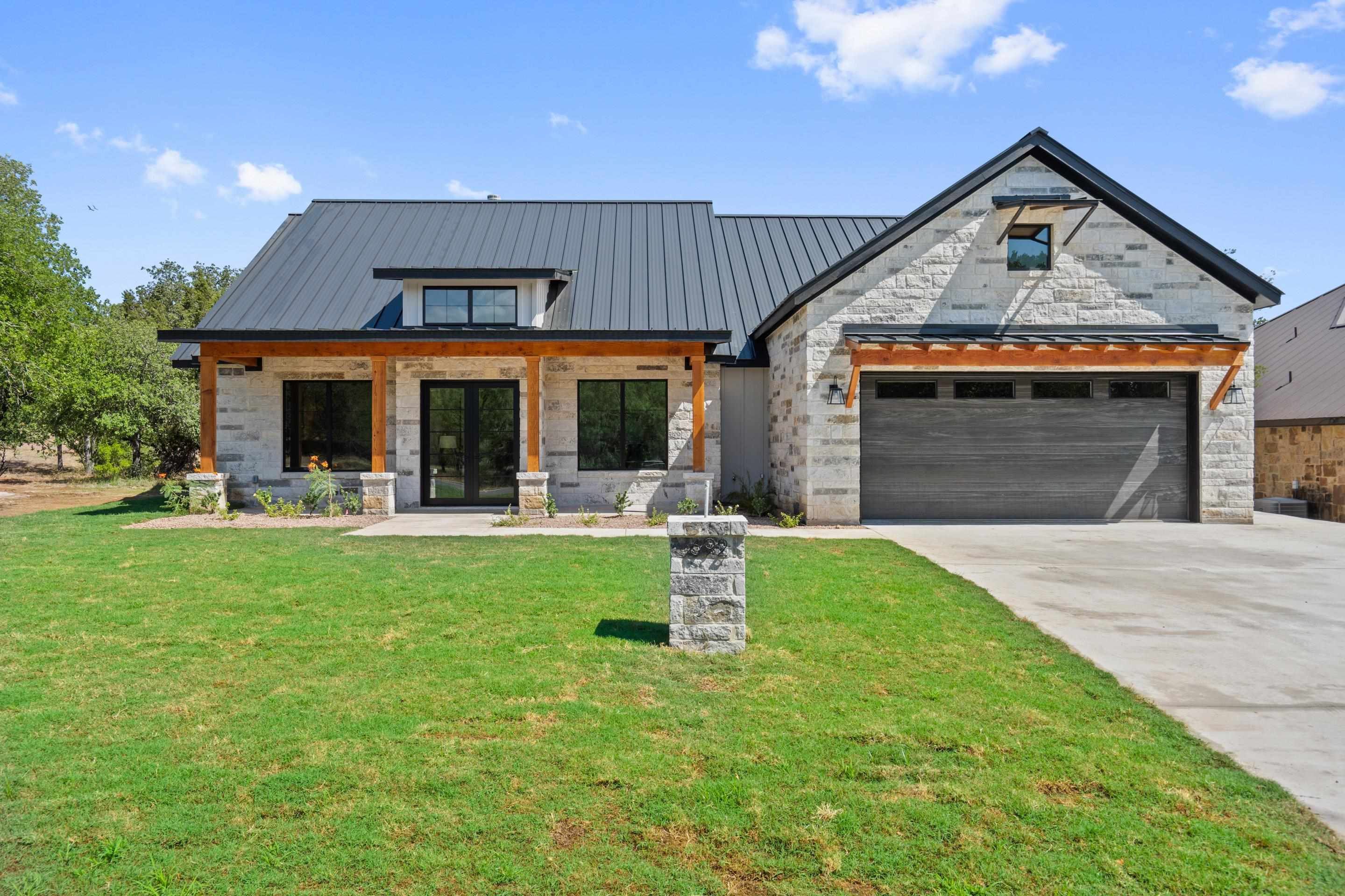 This exquisite new construction Hill Country home is situated caddy corner to the 14th hole of Ram Rock Golf Course, in sought after Horseshoe Bay West. This home offers some of the finest in details and finishes throughout; 2x6 exterior frame, Italian porcelain flooring in main living area, granite counter tops and polished Italian porcelain wall in primary bathroom and shower, quartz counter tops in all additional bathrooms and laundry room, and Douglas Fir beams at the entrance and veranda, just to name a few. This beautiful floorplan includes a primary suite with a spa-like bathroom including a free standing tub in the shower, a large primary closet that opens up to the laundry room/mud room, 2 guest rooms with a jack and jill bathroom and private vanities, and a study or formal dining room. The kitchen boasts all Berzatoni appliances, granite countertops with mitered laminated edge, and opens up to the 20’ vaulted pine ceiling in the living room. Within the living room you will be greeted with the warmth of the wood burning Travertine floor to ceiling fireplace. The living room provides a seamless flow for alfresco dining and family gatherings on the veranda. The veranda is the perfect place to end your day enjoying peace and solitude of Horseshoe Bay.