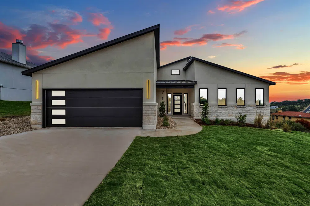 This custom 3bdr 2.5 bath with a flex room (office) home features European windows, high end fixtures and unique style. Immerse yourself in a lifestyle of luxury, comfort, and natural beauty. Whether you're relaxing in the expansive living spaces, entertaining guests, or enjoying the captivating sunsets over the Texas Hill Country, this home offers an unparalleled living experience. The clean lines, minimalist finishes, and stylish fixtures create a space that is both inviting and on-trend. Prepare to be captivated by the breathtaking panoramic views of the Texas Hill Country from the comfort of your own home. As you step into this extraordinary home, you'll be greeted by high vaulted ceilings that create an expansive and airy atmosphere. The generous height gives a sense of grandeur, allowing natural light to flood the living spaces throughout the day. The kitchen is the heart of any home, and this property boasts quartz countertops that are not only beautiful but also highly durable. These sleek surfaces offer ample space for meal preparation and Don't miss the opportunity to own a piece of Horseshoe Bay's finest real estate. ****the seller is the licensed agent in the state of Texas