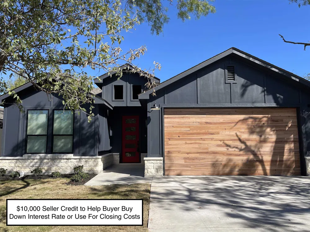 This beautiful single story home approximately 1651 sq. ft. of living has 3 full bedrooms and 2 full baths. Living area has electric fireplace insert with wood mantel. Walls of windows and gorgeous natural stain wood beams in ceilings. Open and bright, luxury vinyl plank floors, shaker type cabinets with black matte hardware, black fixtures, black leathered soap stone counter tops & tile backsplash, black matte stainless appliances including refrigerator, white quartz center island with beautiful pendant lights and floating shelves. Decorator paint colors. Owner's suite is spacious , ceiling fan , owner's bath has double vanities and walk in shower & soaker bathtub. Oversize walk-in closet . All windows have faux wood blinds. Lake Marble Falls is a short walk down the street. Builder will install 6' ft. wood fence in backyard area for privacy.