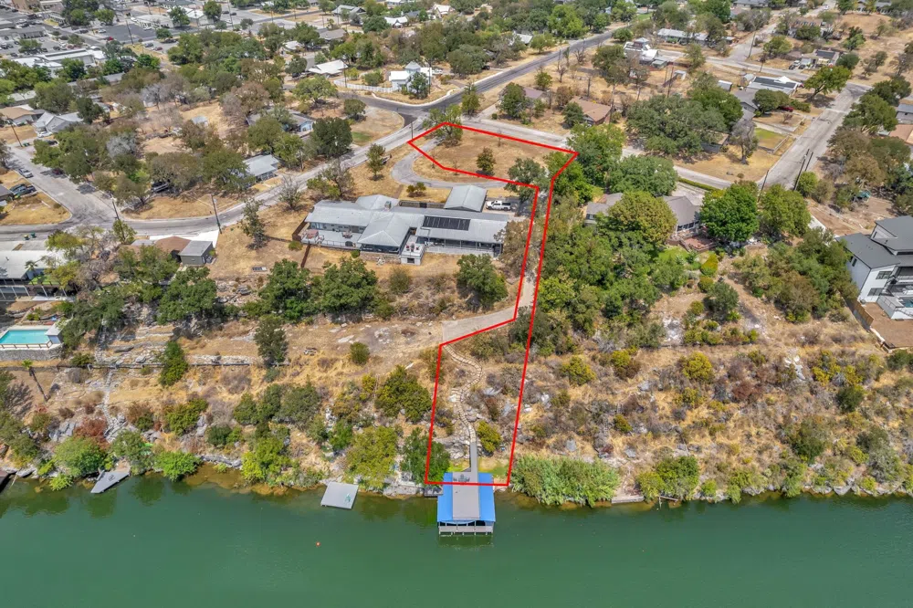 Come see this waterfront Lake Marble Falls homesite with boathouse and stairs to the water already in place! Build your dream lake house on the level, corner portion of the property that is out of the floodplain (neighboring houses did NOT flood in 2018). Follow the stairs down to your two-stall covered boat house and upper deck with unbeatable lake and bridge views! Located in a historic Marble Falls neighborhood, 3 blocks from Hwy 281, you are afforded privacy yet proximity to restaurants, shopping, and downtown amenities! So much value added with the lake access and boat house already built - don't miss this rare opportunity to build on the water! Day use of lower parking for your side-by-side vehicle and beach access is included.